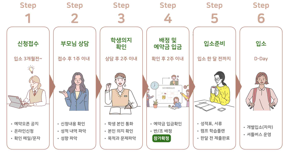 접수부터 상담, 준비, 입소까지 6단계 절차