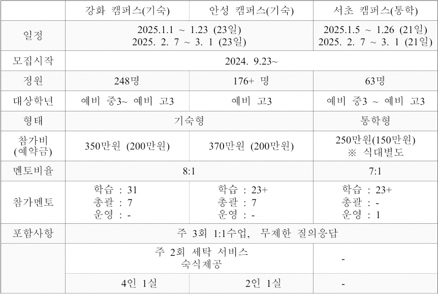 2025년 1·2월 윈터 캠프 참가자 모집이 시작되었습니다.